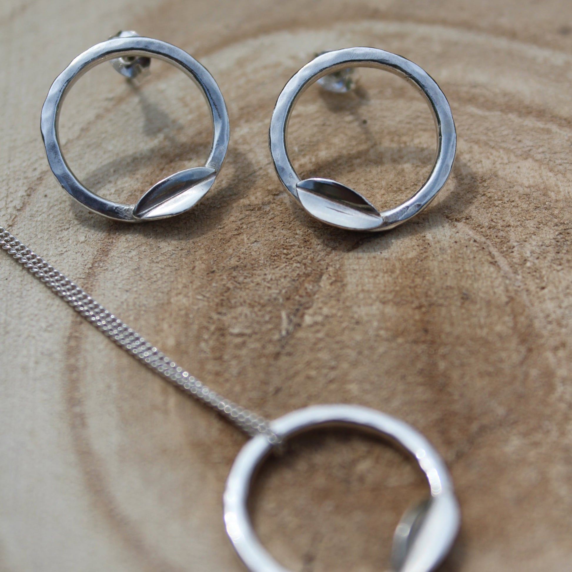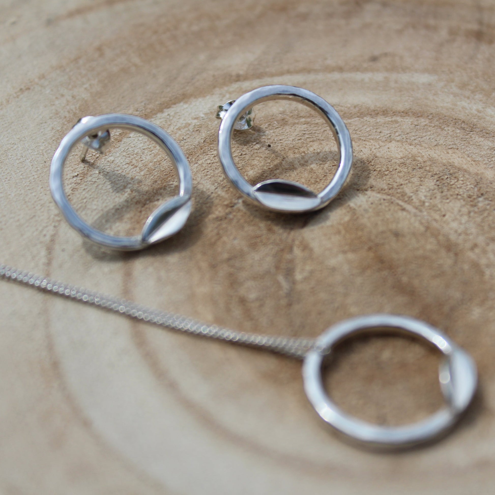 Hammered Hoop Leaf Earrings & Necklace Jewellery Set