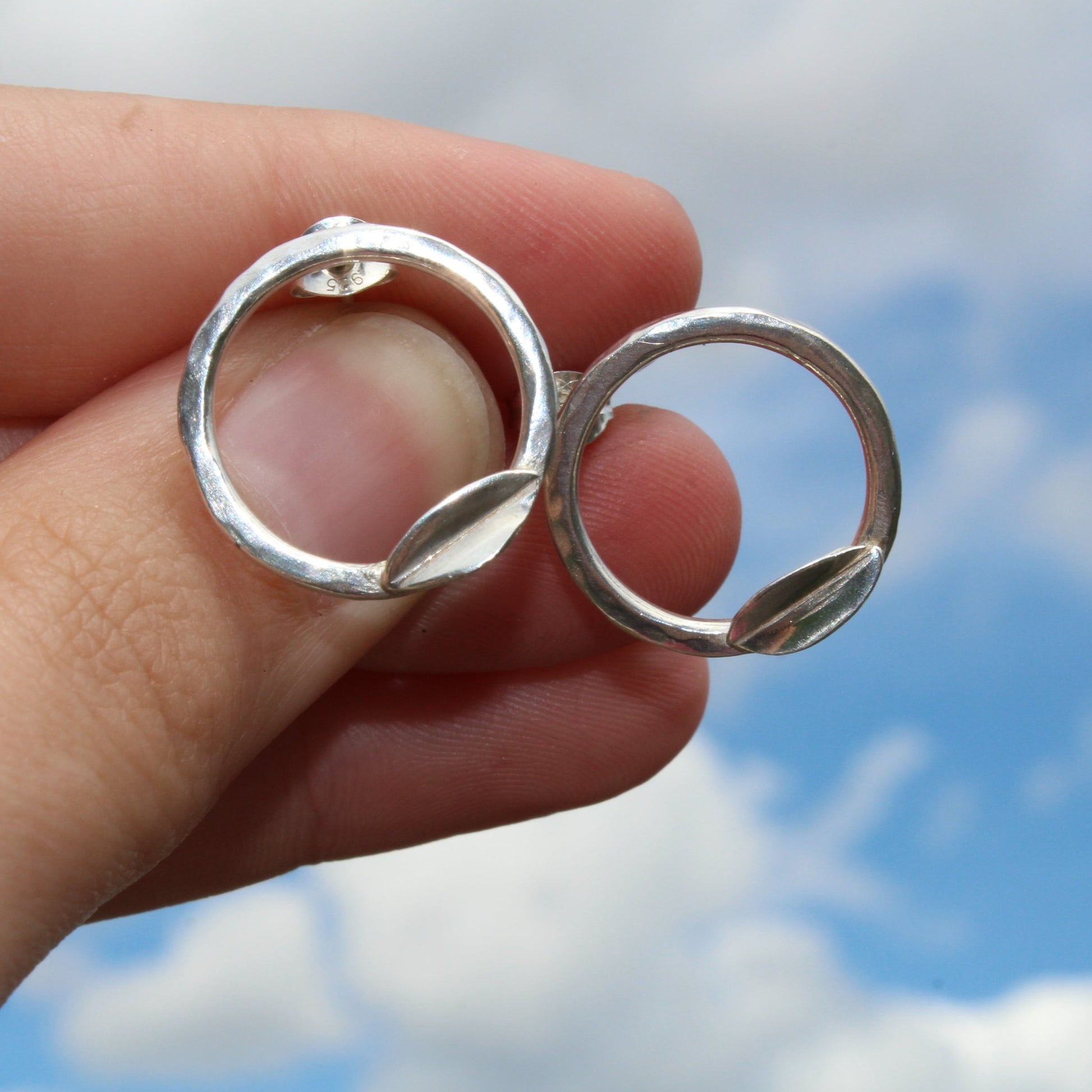 Each earring measures approximately 1.8cm in diameter with a sterling silver post and butterfly fastening.