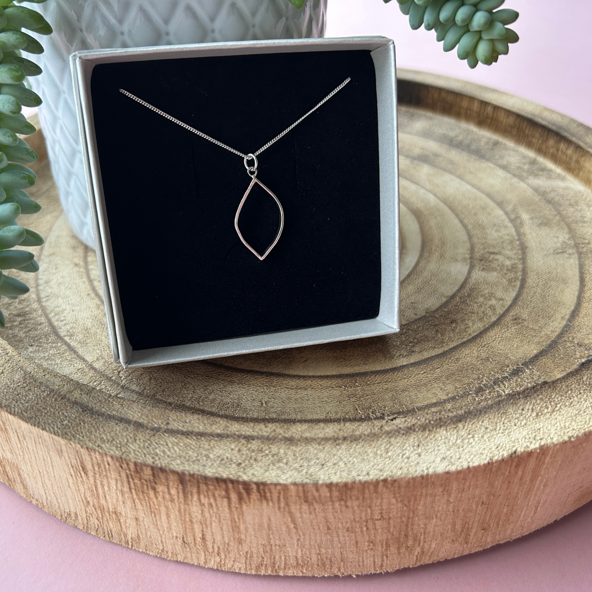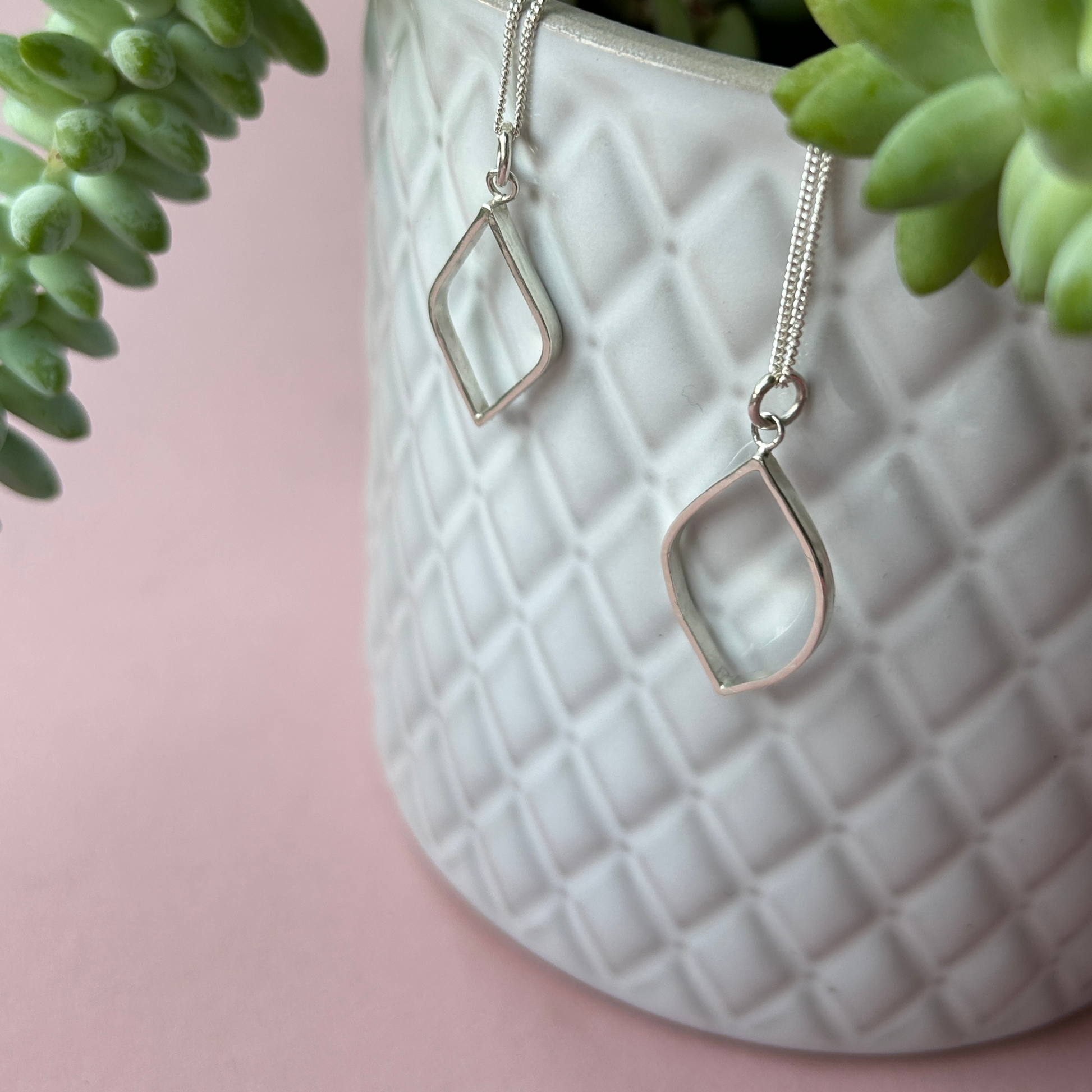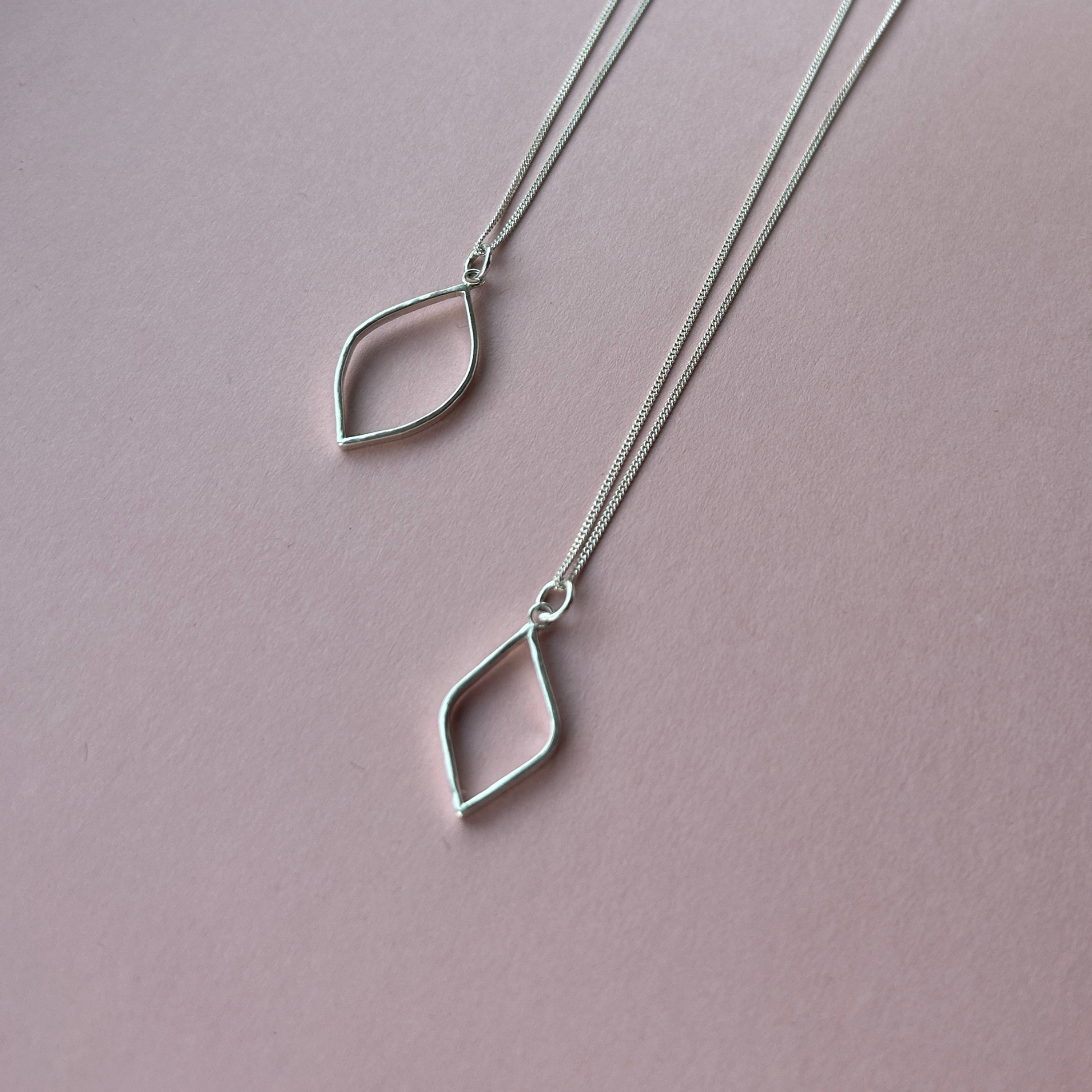 Leaf outlines dangling elegantly from sterling silver 18" chain. This design is a modern, minimalist addition to your jewellery box! Lightweight and comfortable, this necklace can be worn all day everyday!