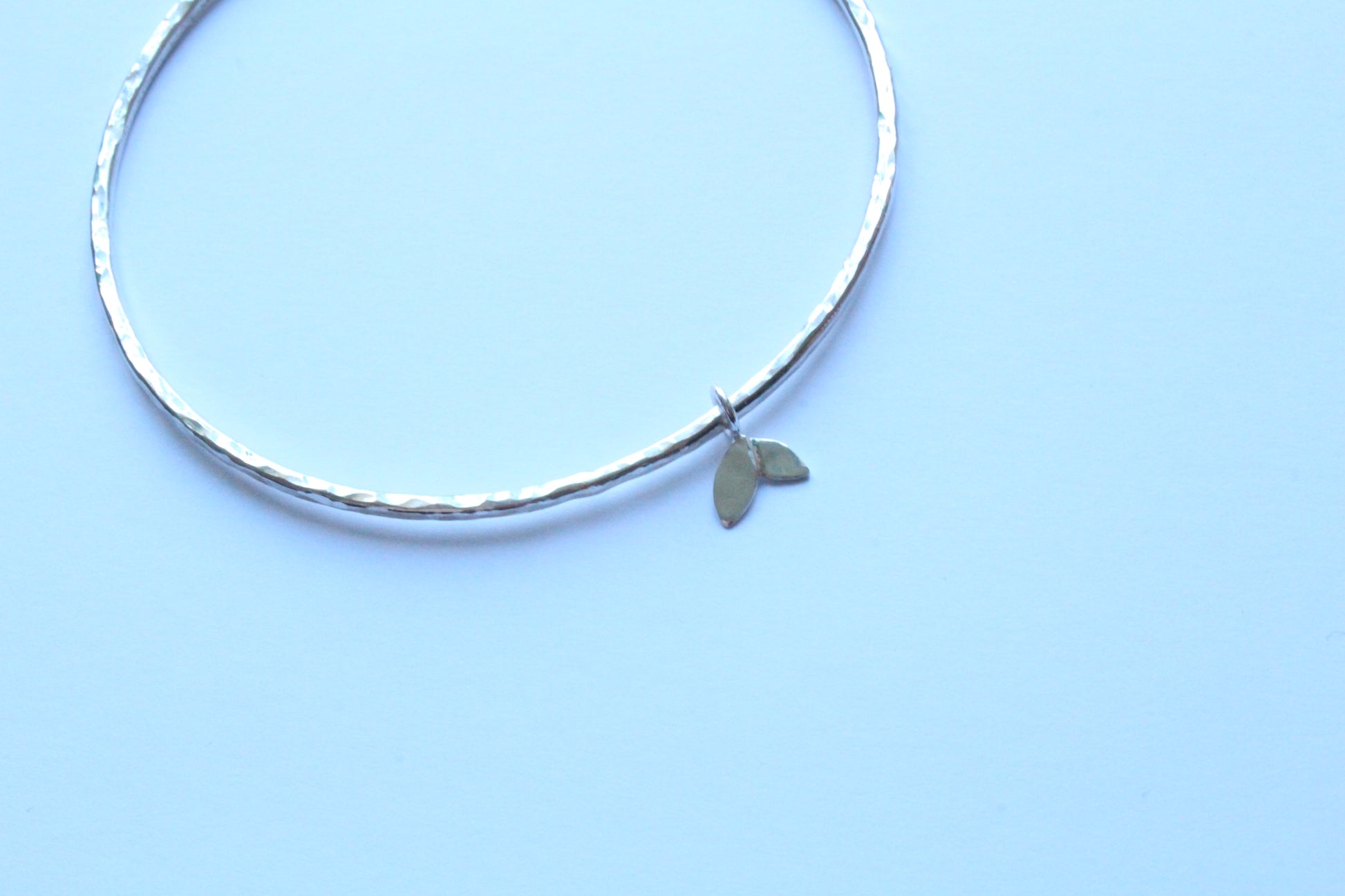 Textured Bangle with Duo Leaf Charm - can be personalised